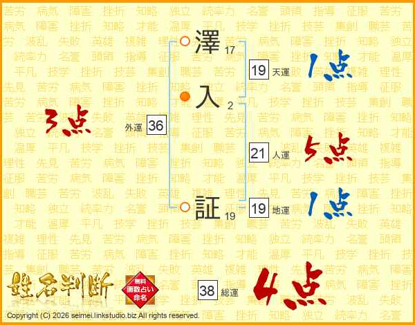 澤入証さんの天運は19画の1点!