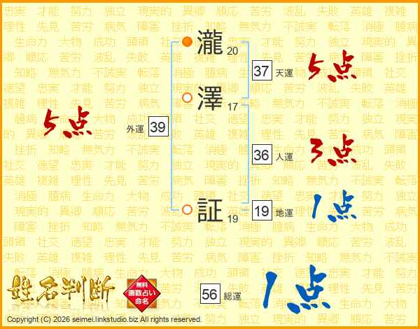 瀧澤証さんの外運は39画の5点!