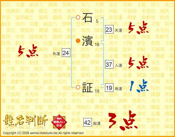 家系が持つ宿命的な運勢を表します。祖先から受け継いだ苗字ですので自分の力が及びません。家柄を象徴します。苗字の合計画数。