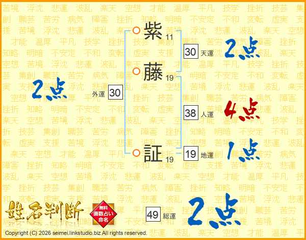 家系が持つ宿命的な運勢を表します。祖先から受け継いだ苗字ですので自分の力が及びません。家柄を象徴します。苗字の合計画数。