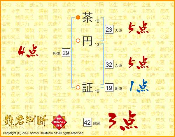 茶円証さんの総運は42画の3点!