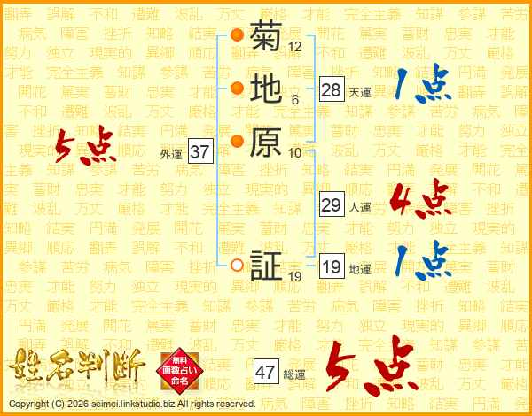 菊地原証さんの総運は47画の5点!