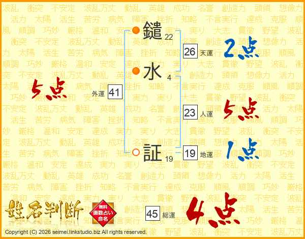 鑓水証さんの天運は26画の2点!