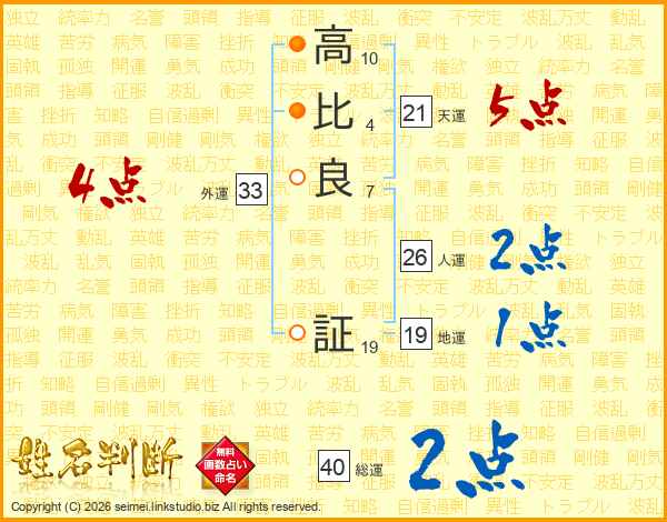 高(10画)比(4画)良(7画) 証(19画)