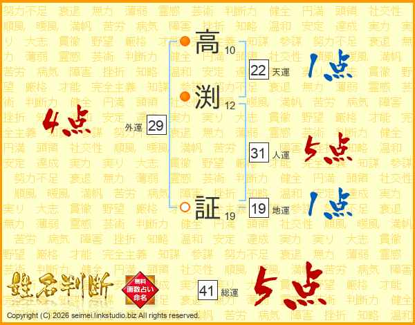 高渕証さんの総運は41画の5点!