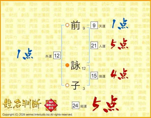 前(9画) 詠(12画)子(3画)