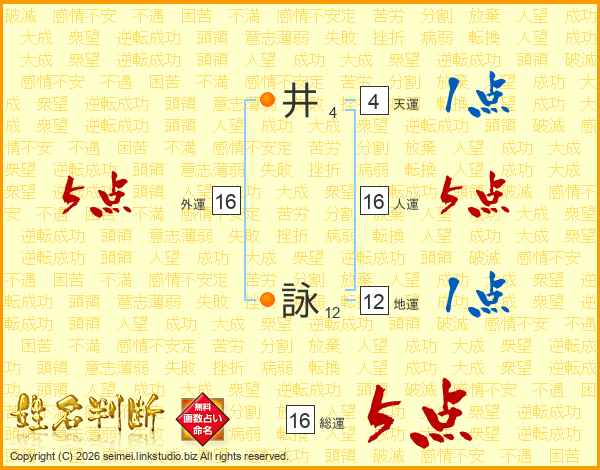 井詠さんの総運は16画の5点