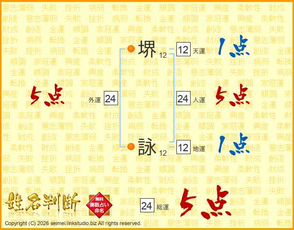 堺詠さんの総運は24画の5点!