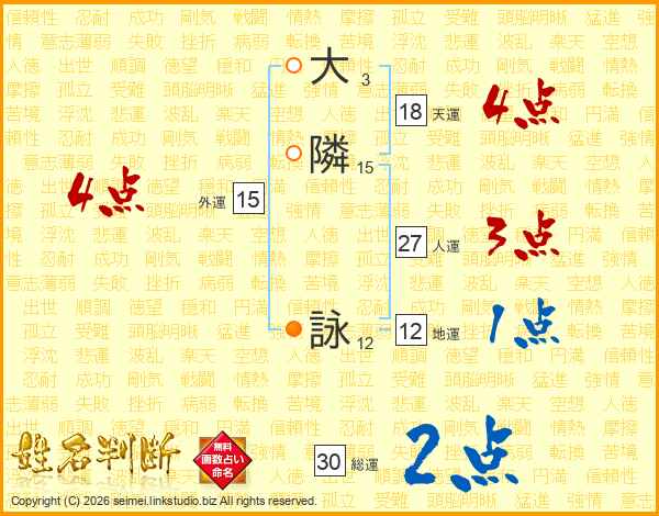 大隣詠さんの総運は30画の2点!