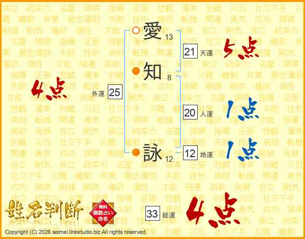 愛知詠さんの総運は33画の4点!
