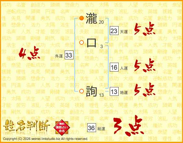 瀧口詢さんの総運は36画の3点!