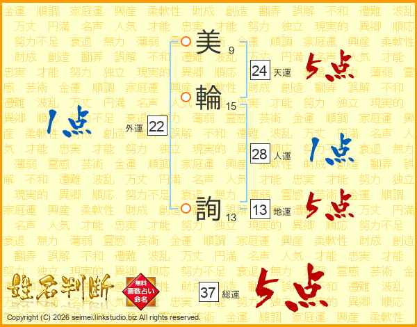 美(9画)輪(15画) 詢(13画)