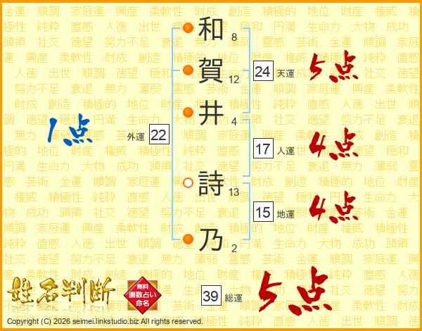 和賀井詩乃さんの総運は39画の5点!