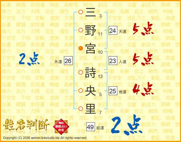 三野宮詩央里さんの天運は24画の5点!