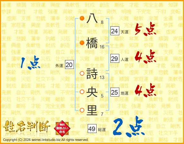 八橋詩央里さんの人運は29画の4点!