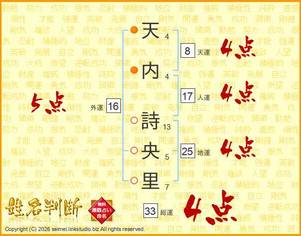 天内詩央里さんの総運は33画の4点!