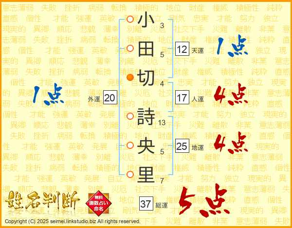 小田切詩央里さんの総運は37画の5点!