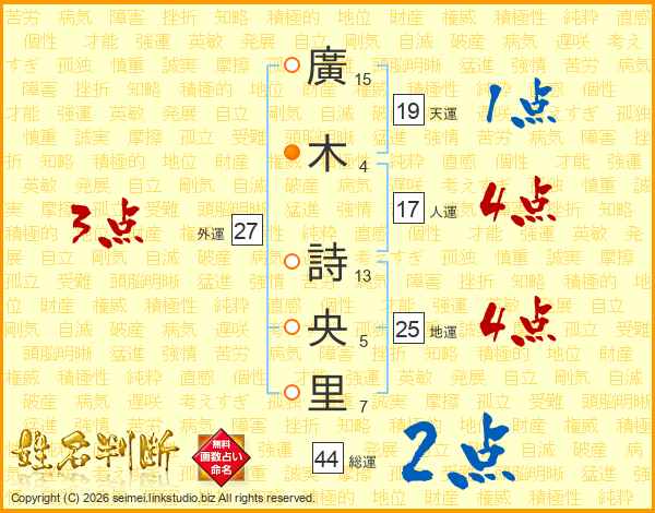 廣木詩央里さんの総運は44画の2点!