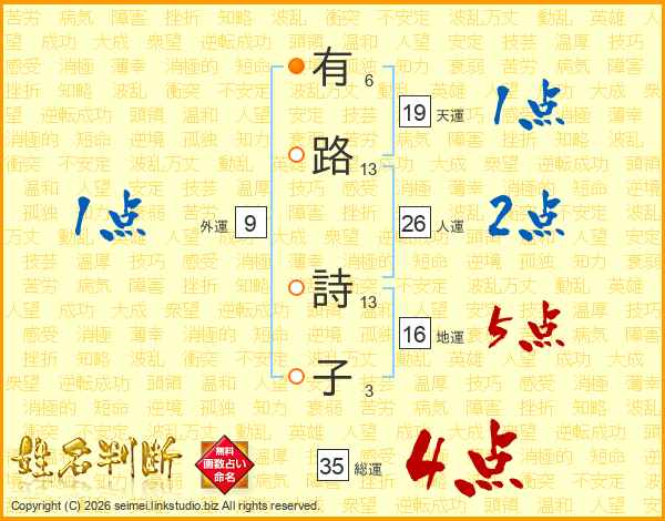 有路詩子さんの総運は35画の4点!