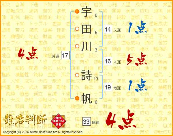 宇田川詩帆さんの総運は33画の4点!
