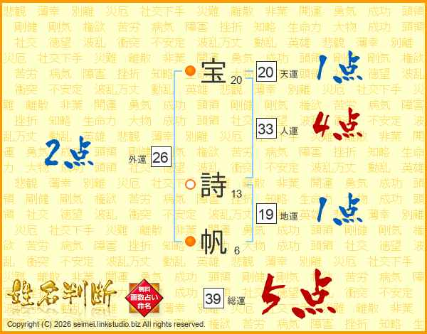 宝詩帆さんの総運は39画の5点!