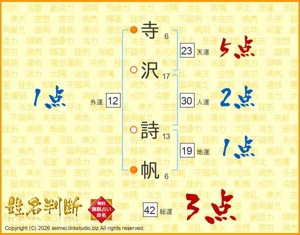 寺(6画)沢(17画) 詩(13画)帆(6画)