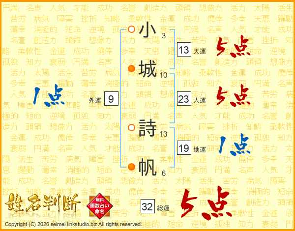 小城詩帆さんの総運は32画の5点!