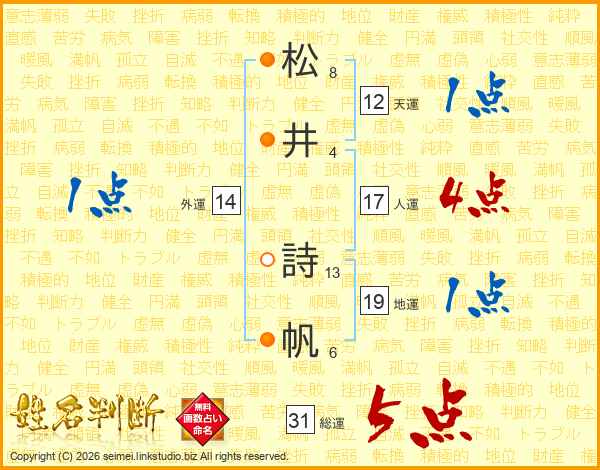 松(8画)井(4画) 詩(13画)帆(6画)