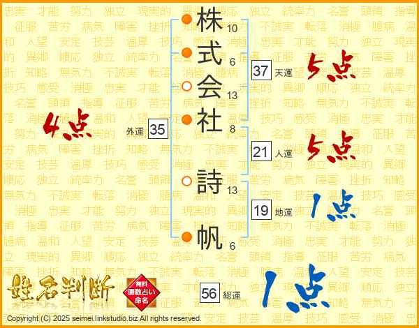 株式会社詩帆さんの総運は56画の1点!
