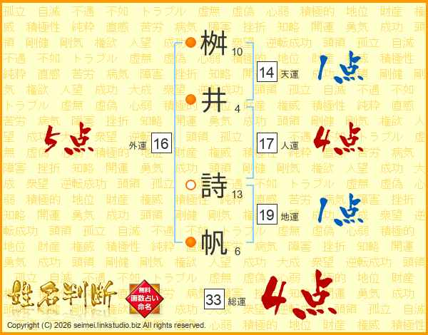 桝井詩帆さんの総運は33画の4点!
