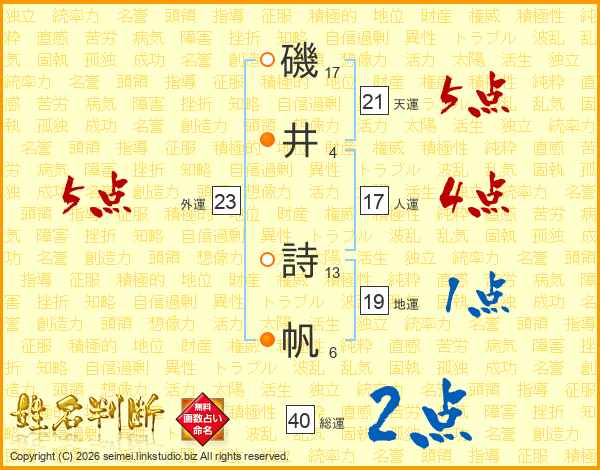 磯井詩帆さんの人運は17画の4点!