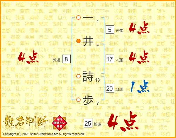 一井詩歩さんの総運は25画の4点!
