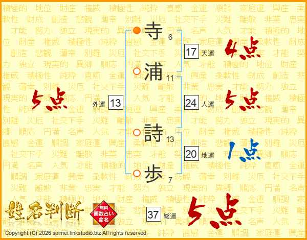 寺(6画)浦(11画) 詩(13画)歩(7画)
