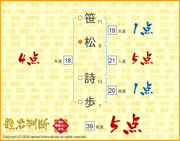 笹(11画)松(8画) 詩(13画)歩(7画)