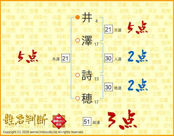 井澤詩穂さんの天運は21画の5点!
