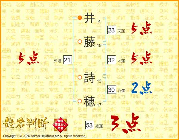 井(4画)藤(19画) 詩(13画)穂(17画)