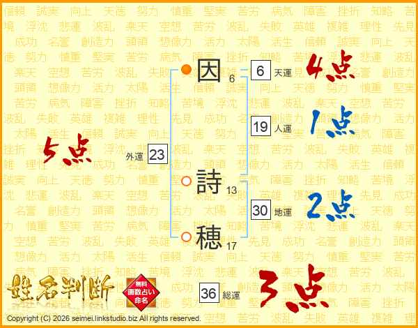 因詩穂さんの総運は36画の3点!