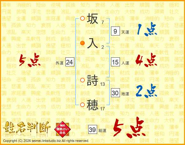 坂入詩穂さんの総運は39画の5点!