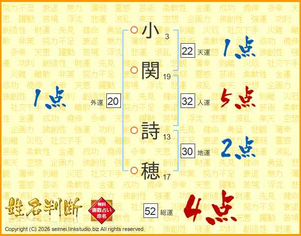 小関詩穂さんの総運は52画の4点!