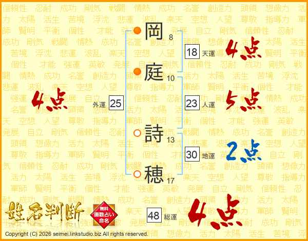 岡(8画)庭(10画) 詩(13画)穂(17画)