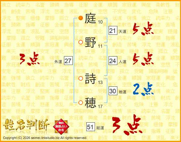 庭(10画)野(11画) 詩(13画)穂(17画)
