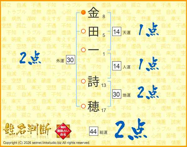 金田一詩穂さんの総運は44画の2点!