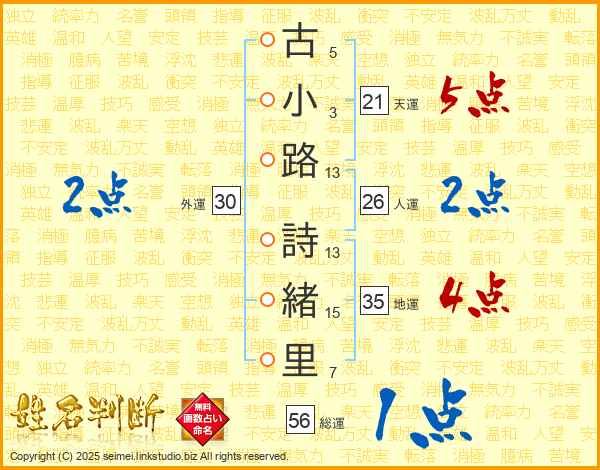 古小路詩緒里さんの天運は21画の5点!