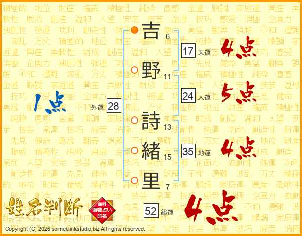 吉野詩緒里さんの総運は52画の4点!