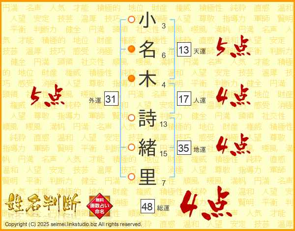 小名木詩緒里さんの総運は48画の4点!