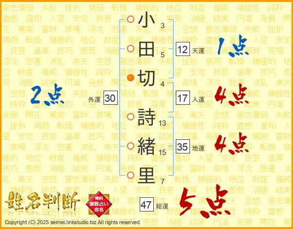 小田切詩緒里さんの総運は47画の5点!
