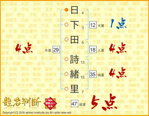 日下田詩緒里さんの総運は47画の5点!