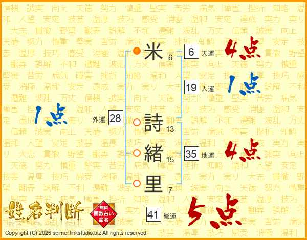 米詩緒里さんの総運は41画の5点!