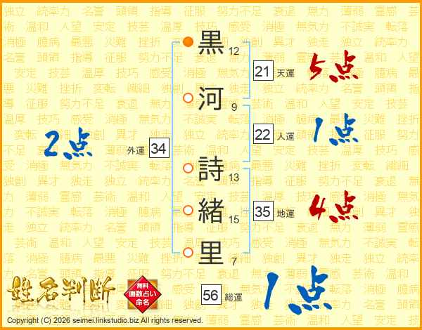 黒河詩緒里さんの総運は56画の1点!