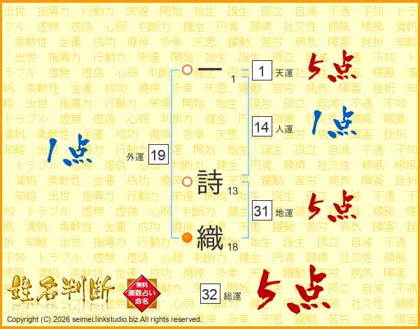 一詩織さんの総運は32画の5点!